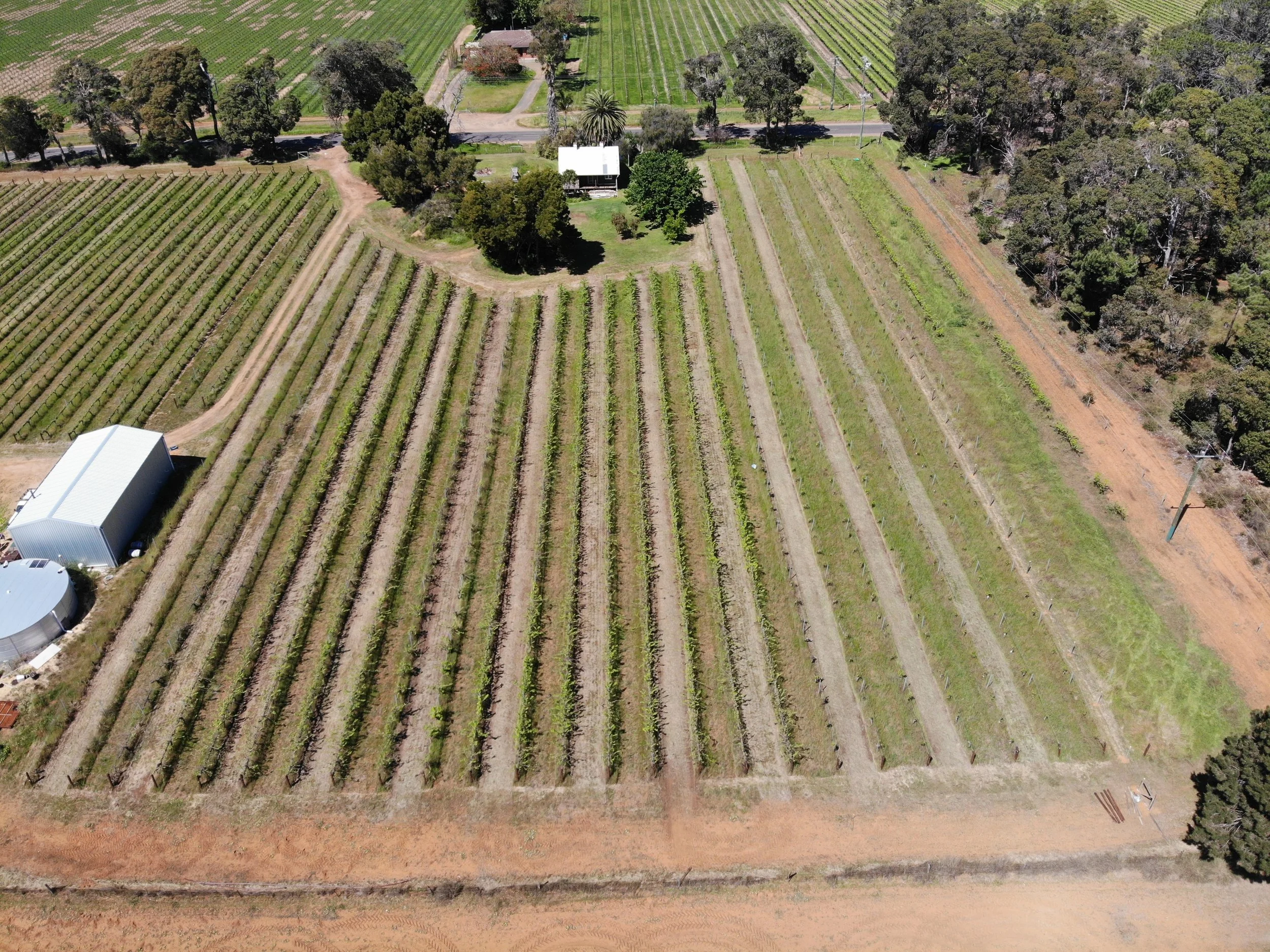 When we took over the property in 2022 we decided to convert the Eastern side of spurred Cabernet to cane pruned vines. This has dramatically increased the health of the vines. On the Western side we pulled out 4 unproductive rows near the bush and grafted the rest to Chardonnay, Nebbiolo and Tempranillo.